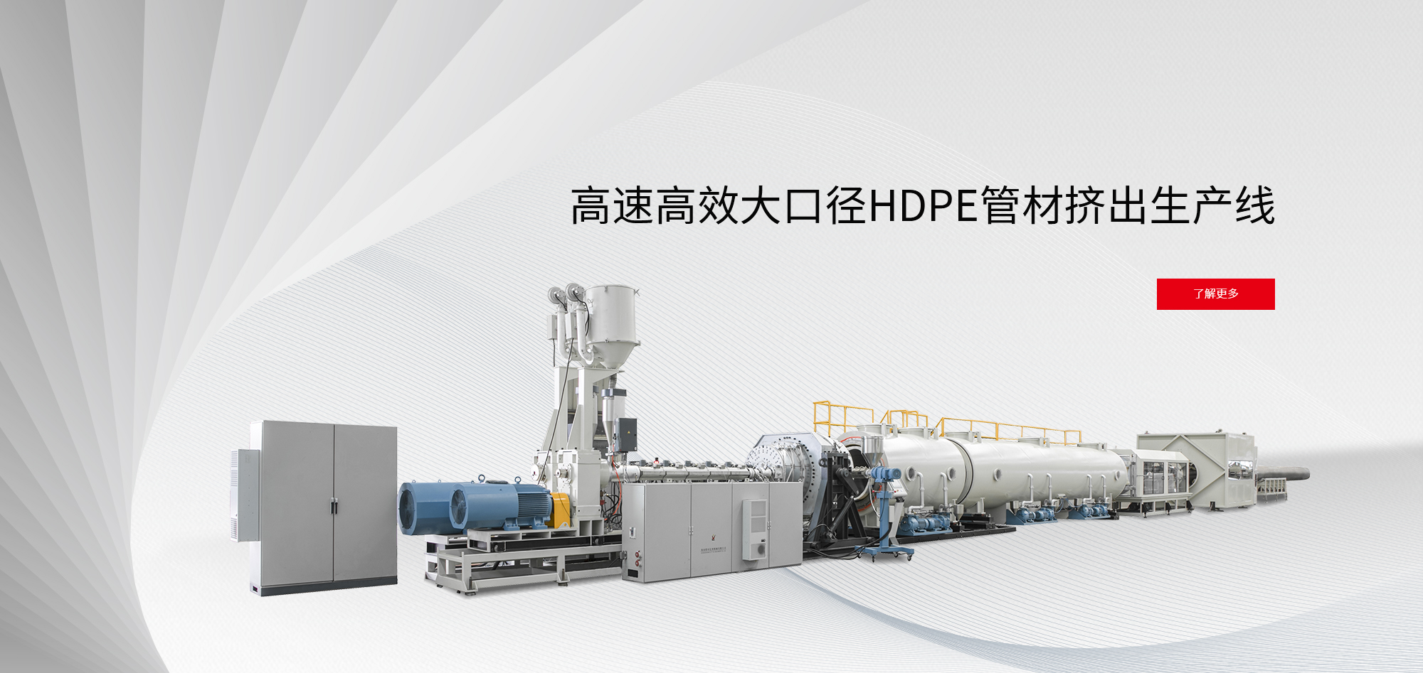 HDPE管材擠出機廣泛應用于全國供水、污水、燃氣、家庭供水等工程。它包括HDPE塑料管材擠出機,LDPE塑料管材擠出機,PPR/PERT管材擠出生產線等。億利機械采用歐洲先進的技術,結合自己的技術研發(fā),所提供的生產線具備獨特的結構,高等配置,高程度自動化,操作簡便等特點。 整個生產線采用PLC控制系統和大屏幕液晶顯示,操作非常簡便。